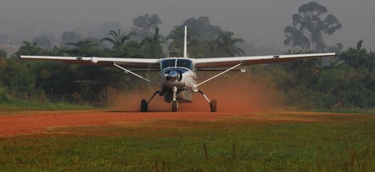 Kihihi airstrip, road transfer to Bwindi home of half of the world's remaining population of the rare mountain gorillas.
